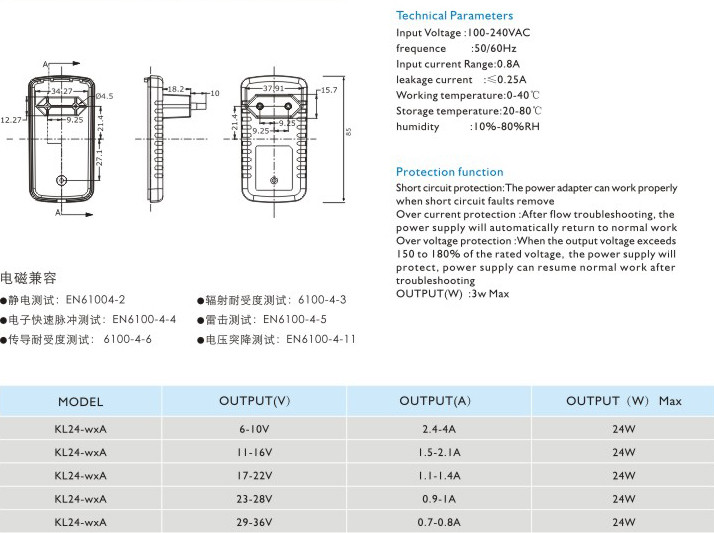 短路保護(hù): 電源適配器在短路解除時能正常工作恢復(fù)